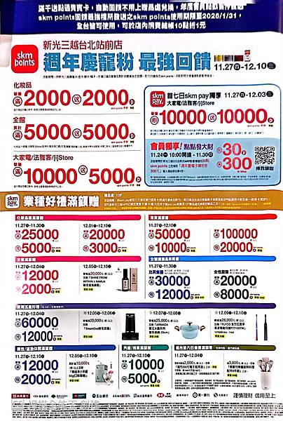 站前新光三越週年慶開始囉,時間114/11/27—114/12/14